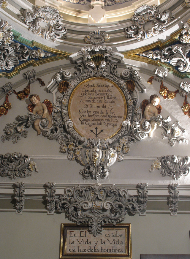 A partir de ahí, la historia empieza a ser nuestra pequeña y gran historia. Una Capilla arruinada, trastero y campanario de la iglesia, fue nuestra primera realidad. Tuvimos que consolidar suelo y paredes, al mismo tiempo que limpiábamos las yeserías de paramentos, cornisas y pechinas, lo que dejaba ver una obra de excelente ejecución fechable en las postrimerías del siglo XVII. Ante ellas, la desnudez de la cúpula fue como un continuo resorte que nos movía para equipararla al resto del espacio, surgiendo así el modelado de elementos que la decoran, sus ángeles pasionistas y sus grandes relieves. Más tarde fue el retablo que se estructura sobre cuatro estípites que soportan una cornisa sobre la que se alza un movido remate; completa el mismo, la mesa de altar tallada delimitando el espacio donde se alberga. A ello hay que añadir, la restauración de la reja y de la puerta de acceso, además de los tres espléndidos óleos que adornan sus paredes. Con ello, a base de esfuerzo e ilusión, concluíamos una obra que pocos pudieron imaginar.