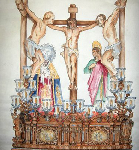 Cuando el futuro trono del Santísimo Cristo del Perdón vea la luz estará ante nosotros la obra póstuma de Jesús Castellanos. El diseño fue aprobado en Cabildo extraordinario el 24 de abril de 2007, fecha en la que se cumplían 25 años de la primera reunión de la Comisión Reorganizadora de nuestra Cofradía. Para este diseño, Jesús Castellanos tomó como modelo el Coro de la Catedral de Málaga. La base sobre la que se sustenta todo el conjunto, lo compone un baquetón gallonado sobre el que se dispone el cajillo propiamente dicho, donde se insertan cartelas y capillas separadas por pilastras. Las cartelas contienen relieves alusivos al Perdón de Dios y las capillas cobijarán imágenes de la Inmaculada (frontal), Virgen de la Victoria (trasera) y San Pedro, Virgen del Carmen, San Carlos y Santo Domingo (laterales).
